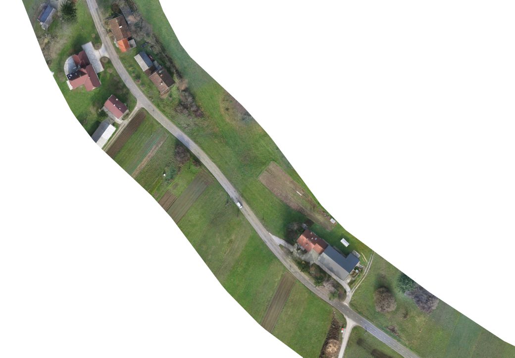 Z brezpilotnim letalnikom smo aerofotografirali območje cestne trase v dolžini 7 km in površini 216 ha in pridobili cca. 4000 aerofotografij ločljivosti 2.7 cm/px ter s tem za LGB-jeve strokovnjake za kataster pridobili pomembne dodatne podatke o mejah zemljiških parcel v naravi. S pomočjo teh prostorskih podatkov so geodeti iz LGB lažje izvedli postopke izboljšave lokacijskih podatkov zemljiškega katastra. Zemljiškokatastrski prikaz je zato lego parcelnih mej prikazal bolj točno, kar projektantom omogoča bolj zanesljivo načrtovanje posegov v prostor, naročniku DRSI pa lažji promet z nepremičninami, saj so se zmanjšale napake pri odkupih in posegih na tuja zemljišča.
