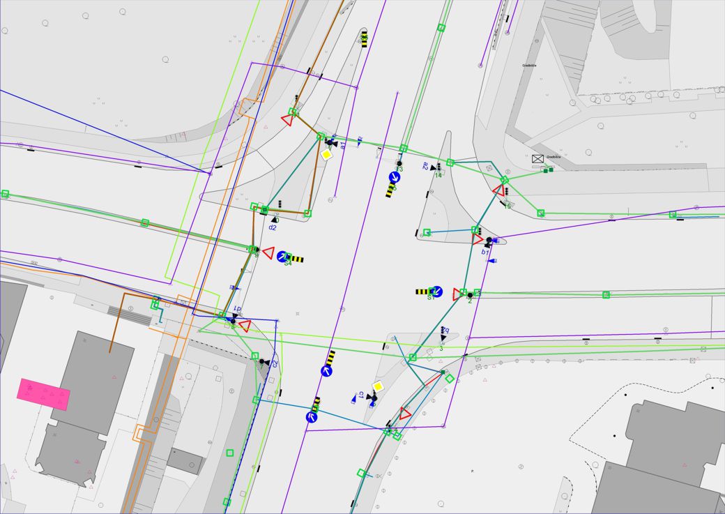 - semaforizacija: stojna mesta, signalodajalci, portali, table, svetilke, zanke in tipke za slepe