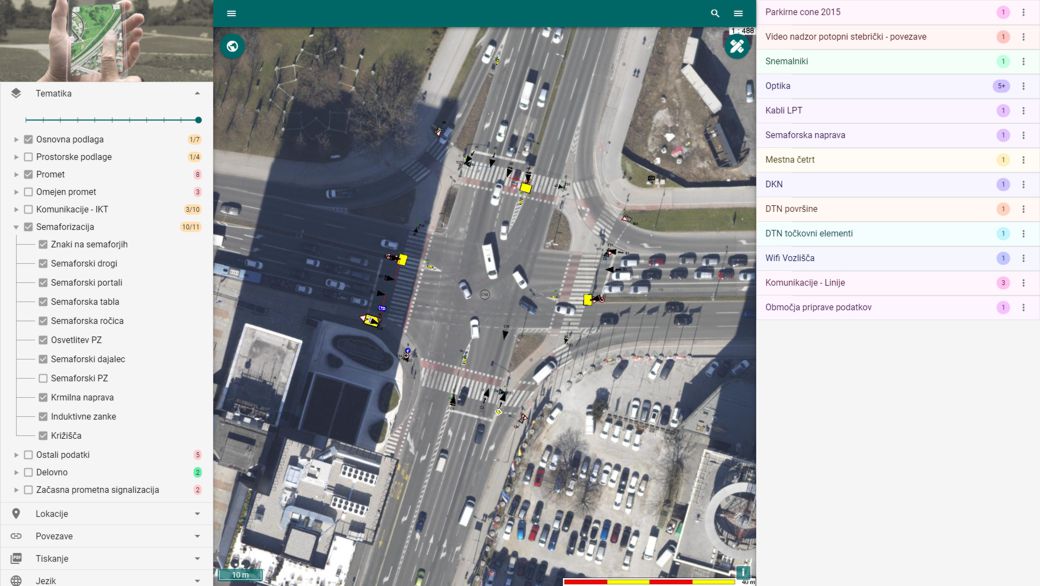 - vodenje, urejanje in grafični prikaz podatkov semaforizacije
