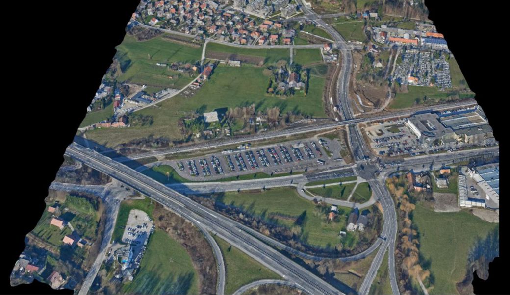 S postopki zgoščevanja oblaka točk smo lahko izdelali zelo podroben digitalni model površja (DMP) in iz njega zatem še popolni ortofoto mozaik (true ortophoto), na katerem so objekti, ki se nahajajo nad terenom, prostorsko pravilno prikazani. Nastali popolni ortofoto mozaik bo podjetje LPT uporabilo kot enega izmed vsebinskih slojev v svojem prostorskem informacijskem sistemu. Prinaša mu vrsto koristi, saj lahko na njem izvaja planimetrične meritve, nanj lahko položi razne vektorske sloje (npr. komunalni vodi) ali pa ga uporabi npr. za prekritje 3D modelov.