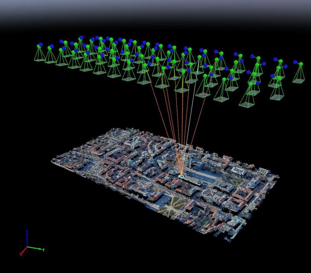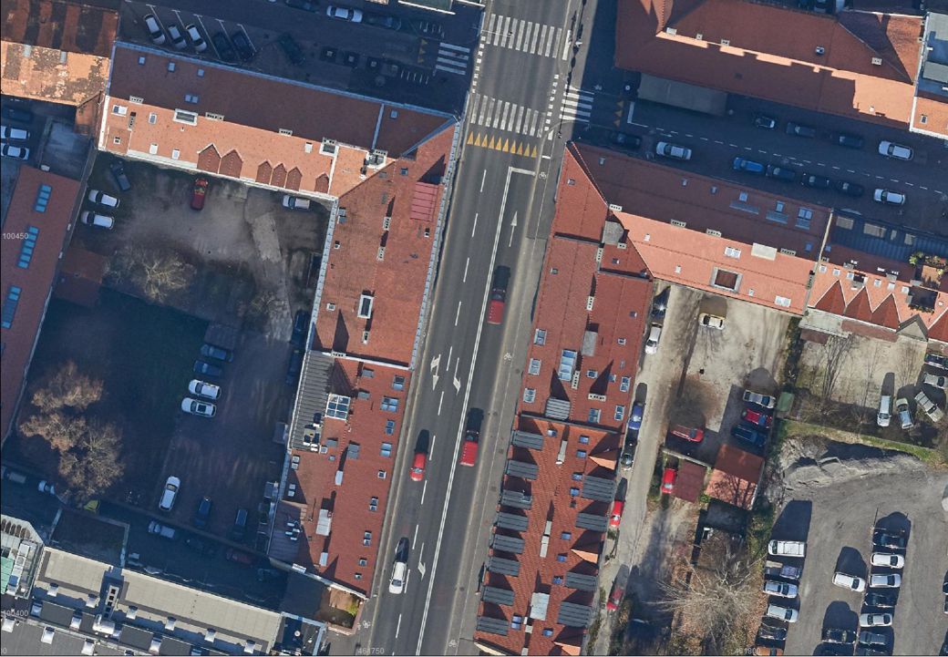 Ljubljana leži v območju omejitve letenja brezpilotnih zrakoplovov, kjer je dovoljeno letenje brezpilotnih letalnikov le do višine 50 m, kar pa je nižje, kot je višina stavb. Aerofotografiranje tega območja je zato izvedlo podjetje Aerovizija, ki ima dovoljenje za aerosnemanja z letalom s posadko in z večjih višin nad poseljenim območjem. V sodelovanju z Aerovizijo smo pridobili aerofotografije na odseku Slovenske ceste med Aškerčevo in Šubičevo cesto. Iz njih smo izdelali ortofoto načrt, boljše kakovosti in višje ločljivosti od obstoječih materialov – novi ortofoto načrt ima ločljivost 5 cm/px, medtem ko ima stari 10 cm/px. Boljša ločljivost sedaj omogoča lažjo prepoznavo detajlov neposredno iz slik in prihrani marsikatero pot na teren, ki je v preteklosti zaradi slabše kakovosti slik zahtevala preverjanje v naravi.